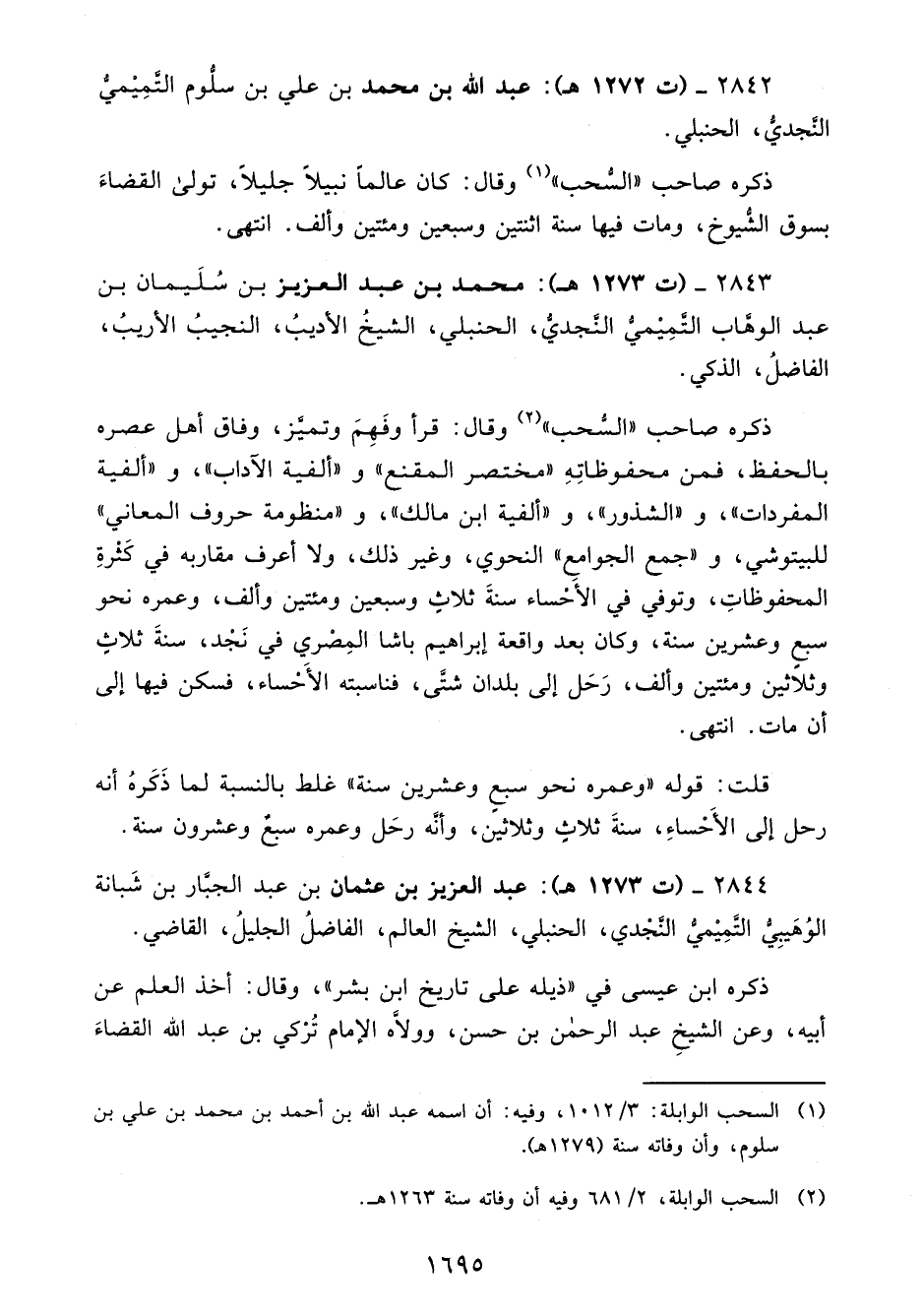 2842 - (ت 1272 هـ): عبد الله بن محمد بن علي بن سلُّوم التَّمِيْميُّ النَّجديُّ، الحنبلي.