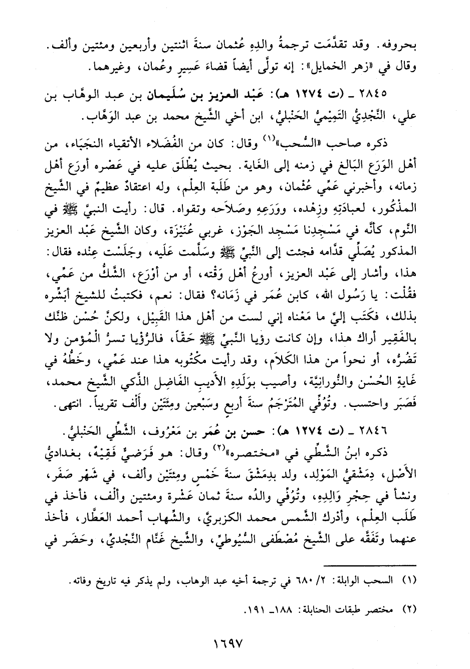 2846 - (ت 1274 هـ): حسن بن عُمَر بن مَعْرُوف، الشَّطِّي الحَنْبليُّ.