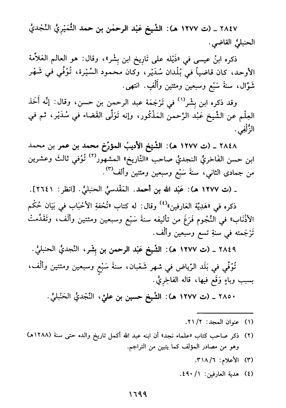 2849 - (ت 1277 هـ): الشَّيخ عَبْد الرحمن بن بِشْر، النَّجديُّ الحنبليُّ.