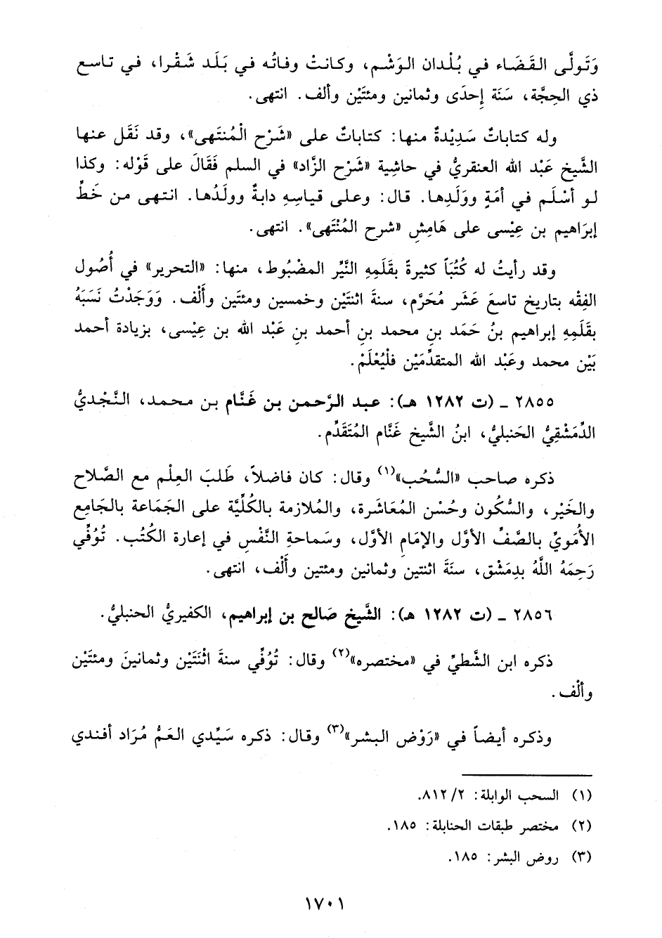 2856 - (ت 1282 هـ): الشَّيخ صَالح بن إبراهيم، الكفيريُّ الحنبليُّ.