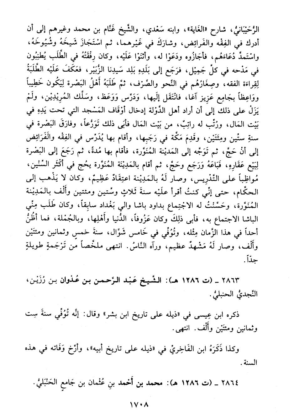 2863 - (ت 1286 هـ): الشَّيخ عَبْد الرَّحمن بن عُدْوان بن رُزَيْن، النَّجديُّ الحنبليُّ.