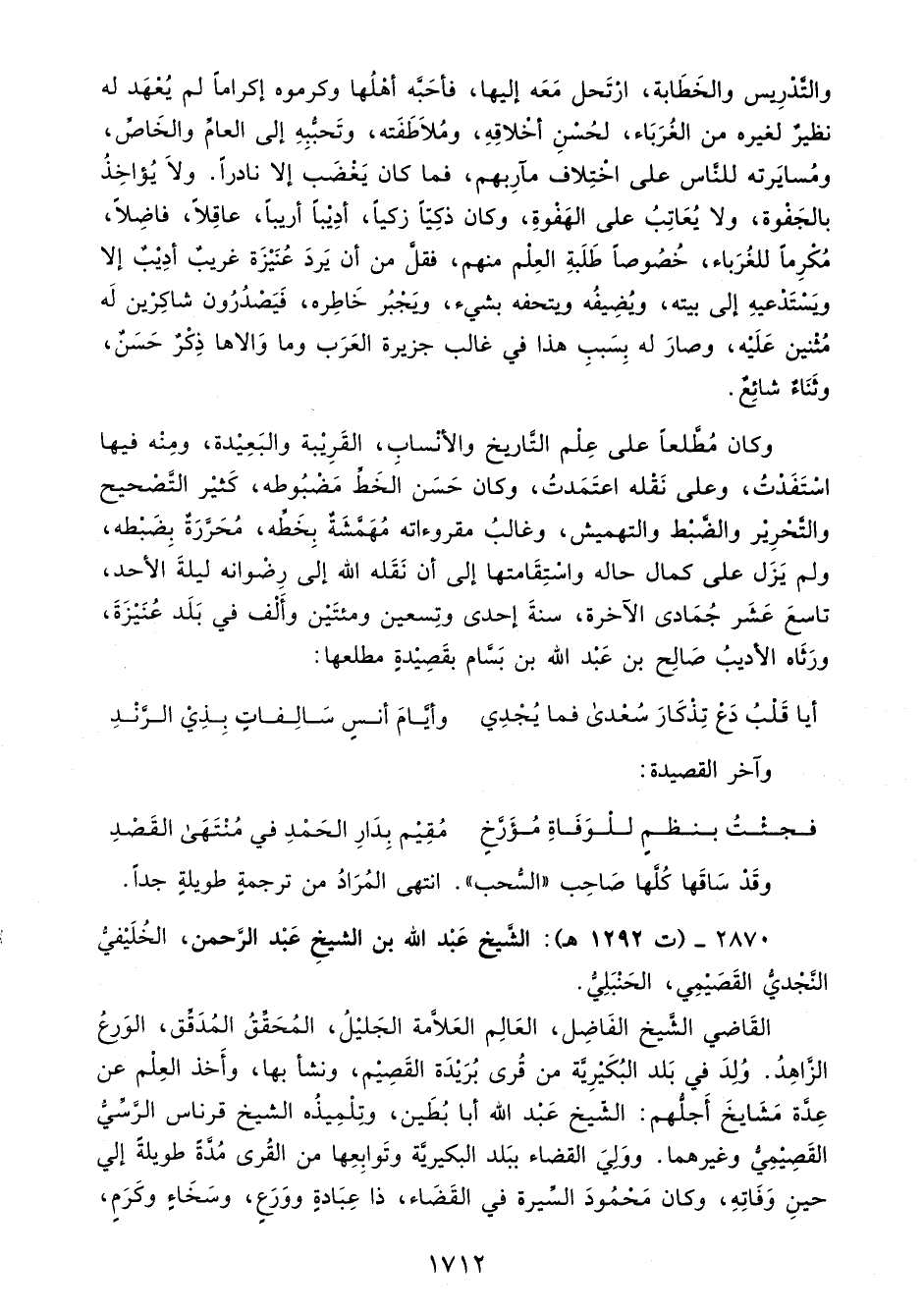 2870 - (ت 1292 هـ): الشَّيخ عَبْد الله بن الشيخِ عَبْد الرَّحمن، الخُلَيْفيُّ النَّجْديُّ القَصَيْمِي، الحَنْبَلِيُّ.