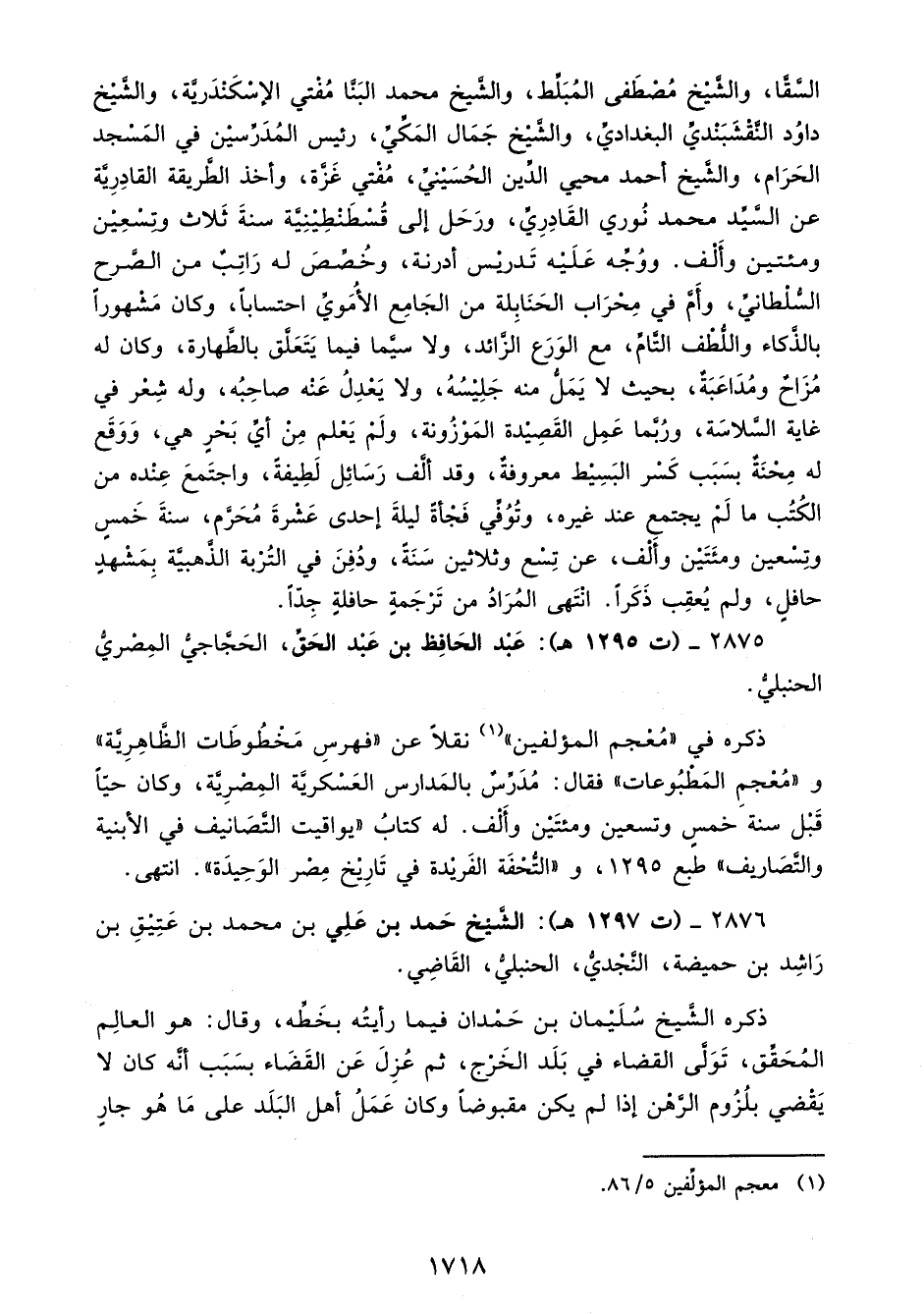 2875 - (ت 1295 هـ): عَبْد الحَافِظ بن عَبْد الحَقِّ، الحَجَّاجيُّ المِصْريُّ الحنبليُّ.