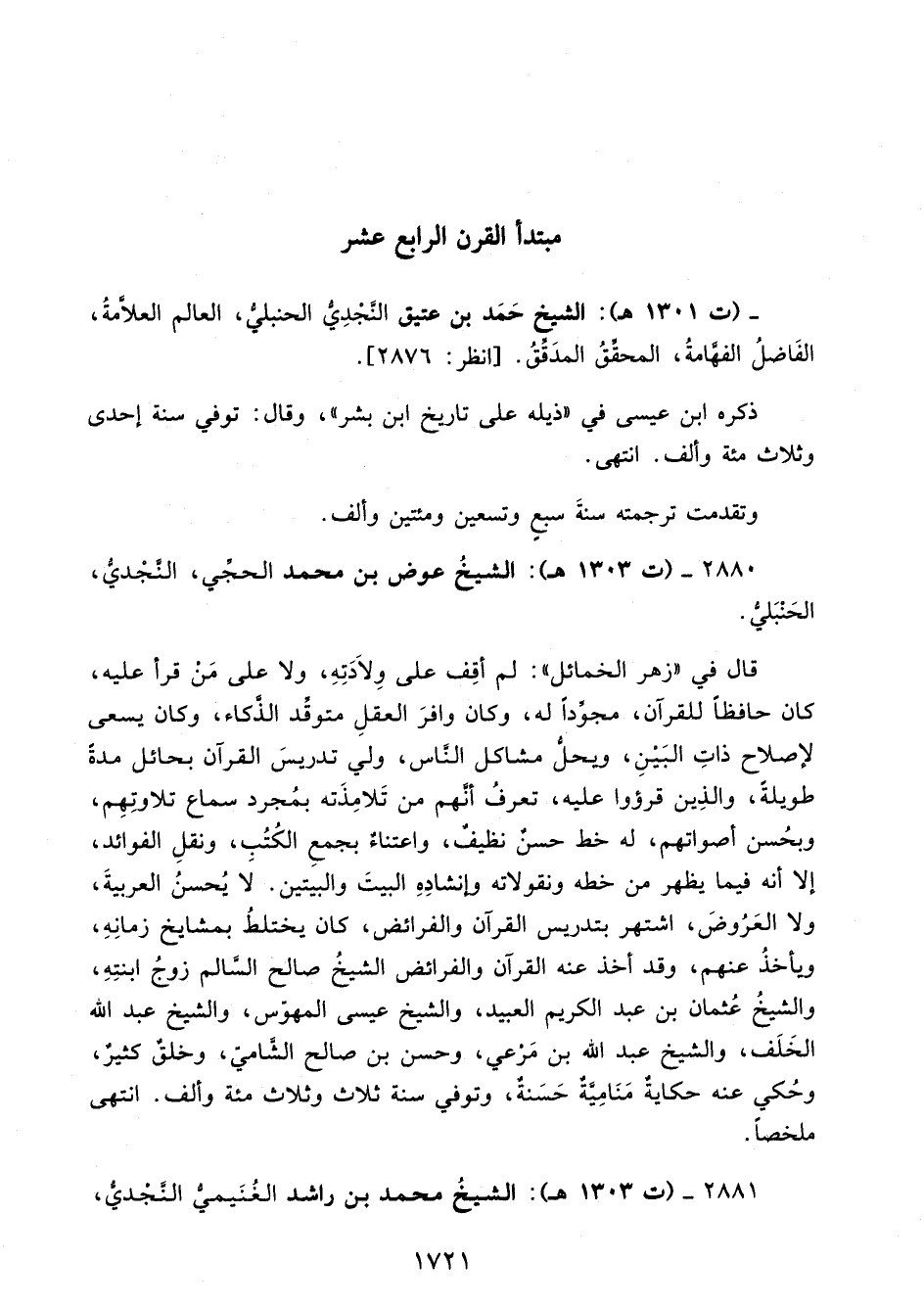 - (ت 1301 هـ): الشَّيخ حَمَد بن عتيق النَّجْدِيُّ الحنبليُّ، العالم العلَّامةُ، الفَاضلُ الفهَّامةُ، المحقِّقُ المدَقِّقُ. [انظر: 2876].