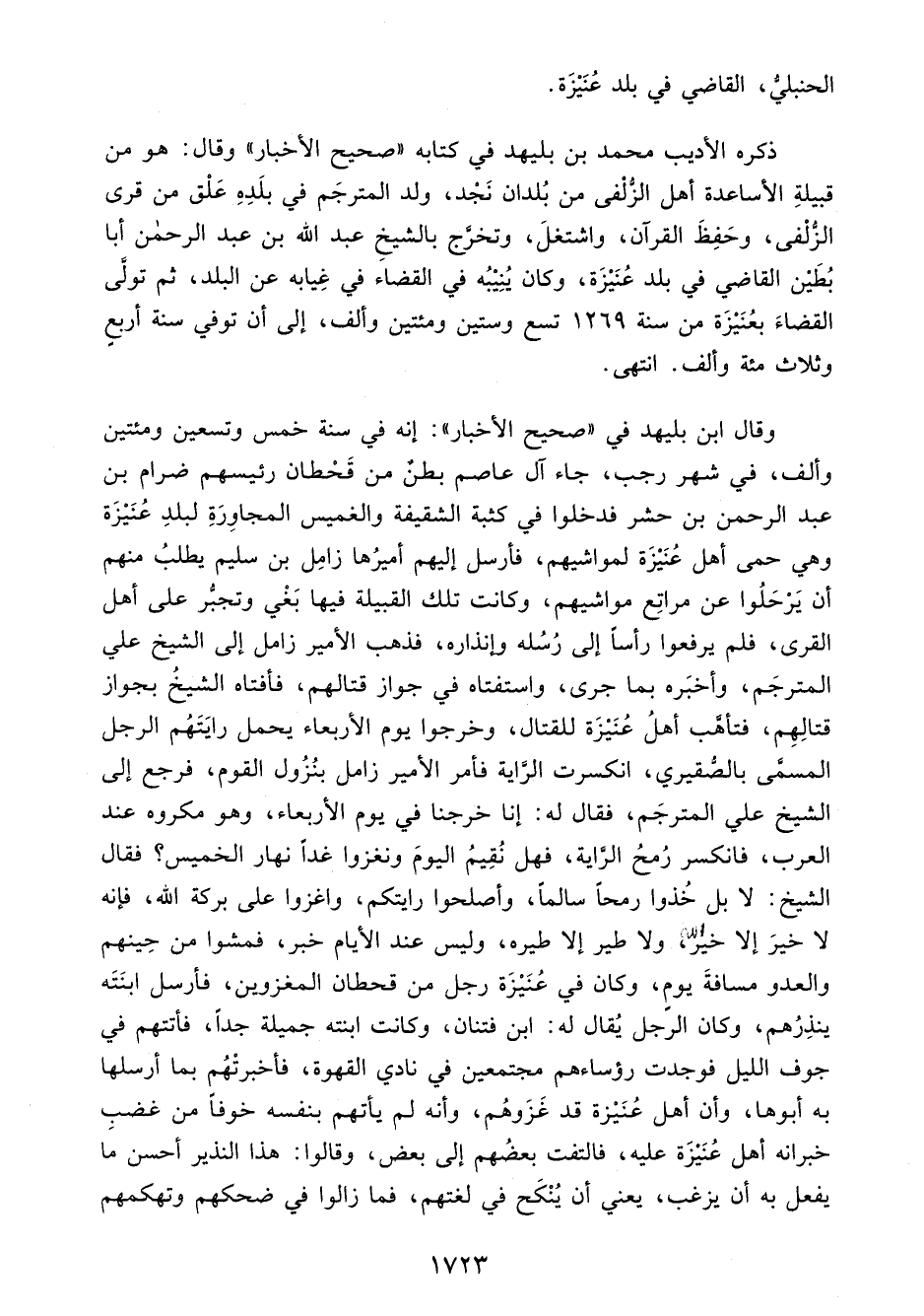 الحنبليُّ، القاضي في بلد عُنَيْزَة.
