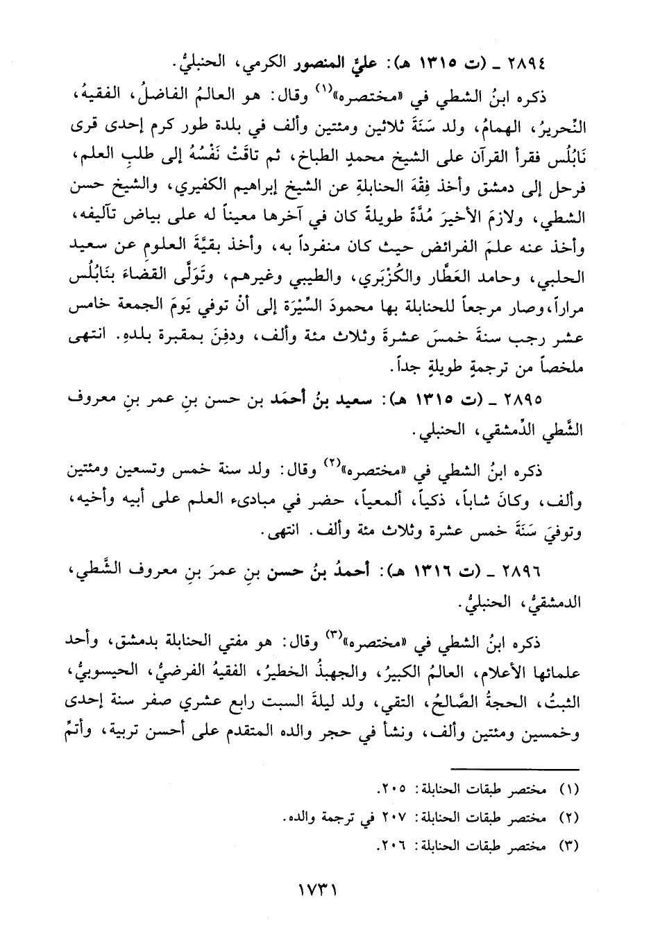 2895 - (ت 1315 هـ): سعيد بنُ أحمَد بن حسن بنِ عمر بنِ معروف الشَّطي الدِّمشقي، الحنبليُّ.