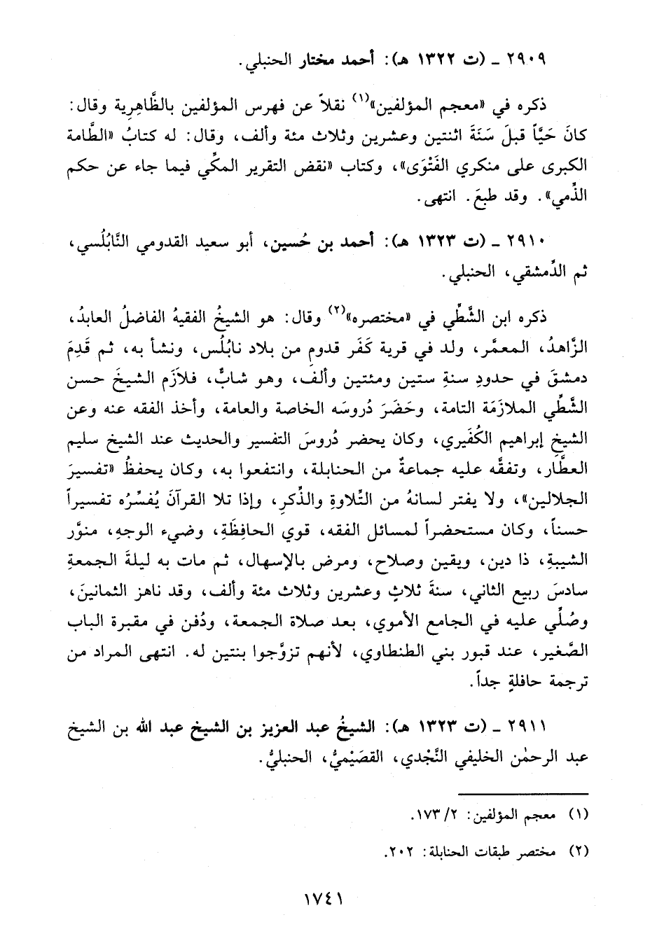 2909 - (ت 1322 هـ): أحمد مختار الحنبلي.