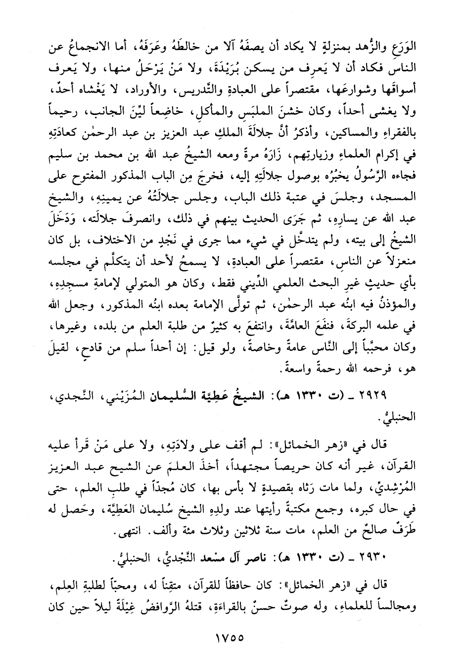 2929 - (ت 1330 هـ): الشيخُ عَطِيَّة السُّليمان المُزَيْني، النَّجدي، الحنبليُّ.