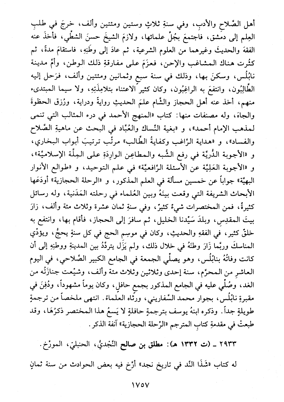2933 - (ت 1332 هـ): مطلق بن صالح النَّجْديُّ، الحنبليّ، المؤرِّخ.