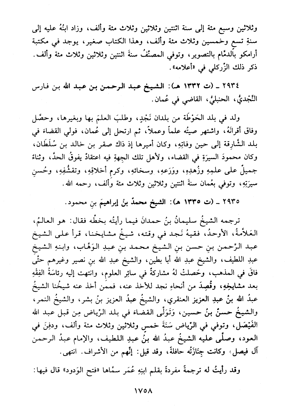 2934 - (ت 1332 هـ): الشيخ عبد الرحمن بن عبد الله بن فارس النَّجْديُّ، الحنبليُّ، القاضي في عُمان.