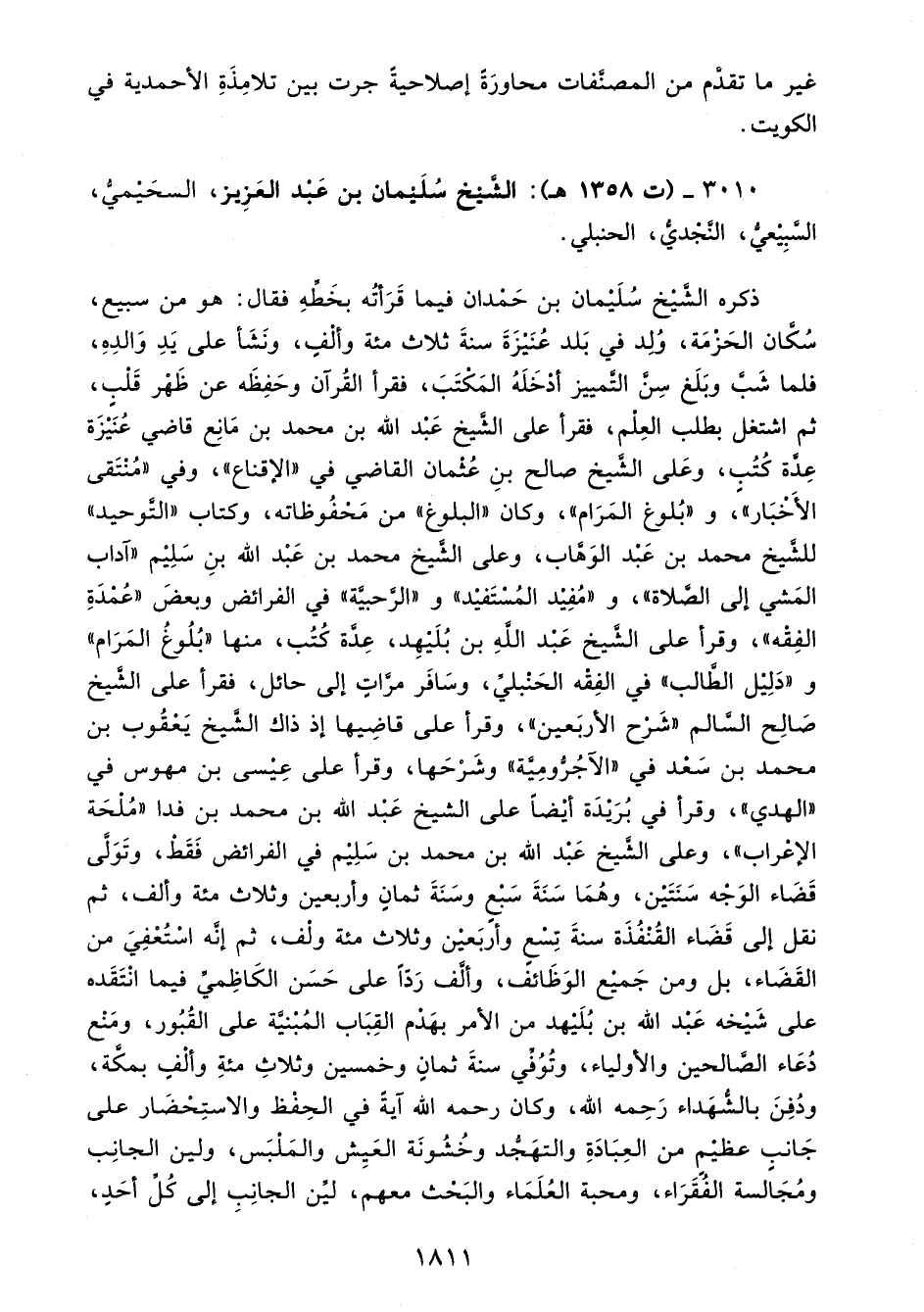 3010 - (ت 1358 هـ): الشَّيخ سُلَيمان بن عَبْد العَزِيز، السحَيْميُّ، السَّبِيعيُّ، النَّجديُّ، الحنبلي.