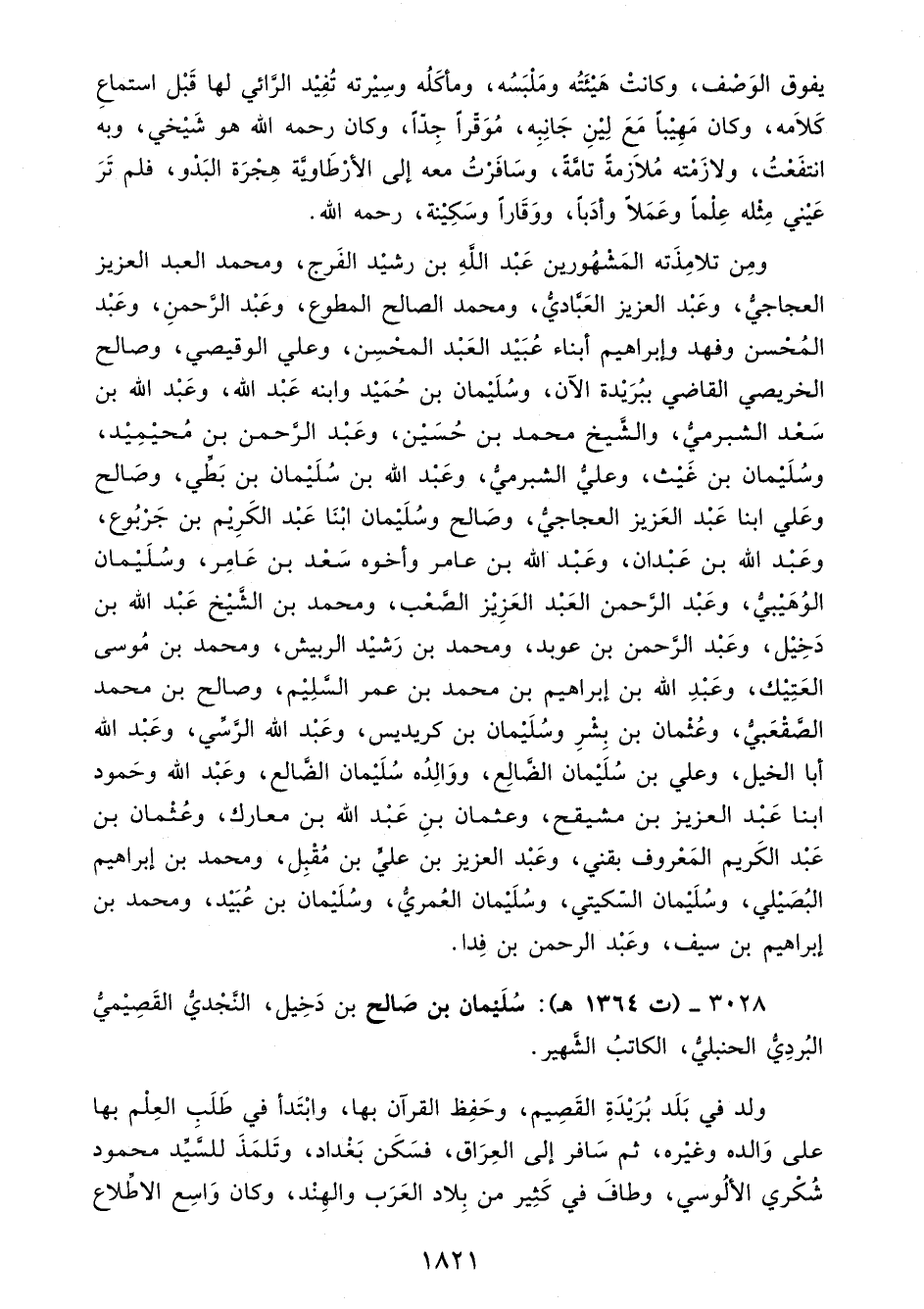 3028 - (ت 1364 هـ): سُلَيْمان بن صَالح بن دَخِيل، النَّجْديُّ القَصيْميُّ البُردِيُّ الحنبليُّ، الكاتبُ الشَّهير.