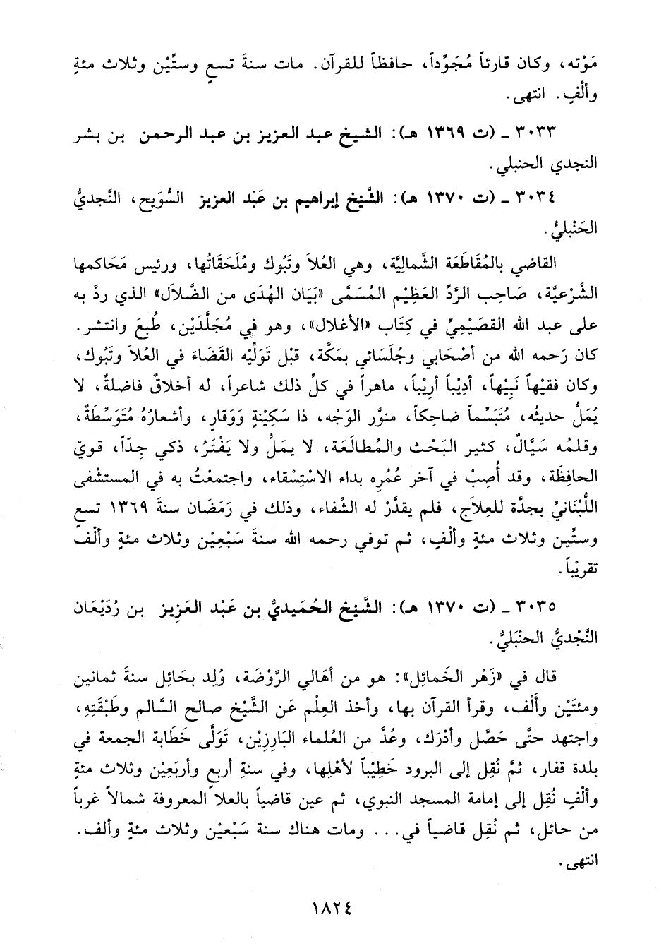 3035 - (ت 1370 هـ): الشَّيْخ الحُمَيديُّ بن عَبْد العَزِيز بن رُدَيْعَان النَّجْديُّ الحنْبَليُّ.