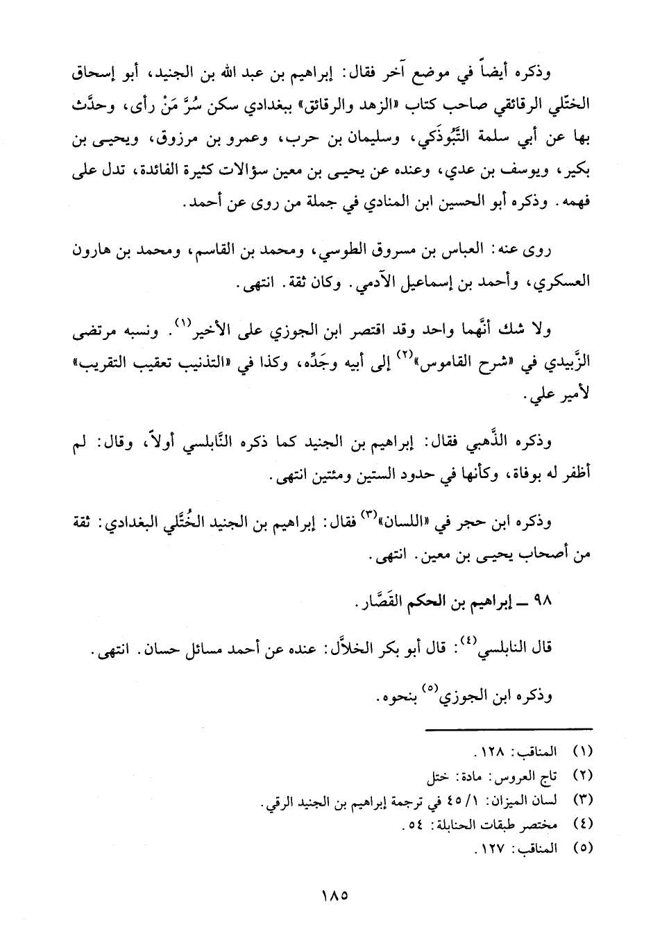 (¬3) لسان الميزان: 1/ 45 في ترجمة إبراهيم بن الجنيد الرقي.