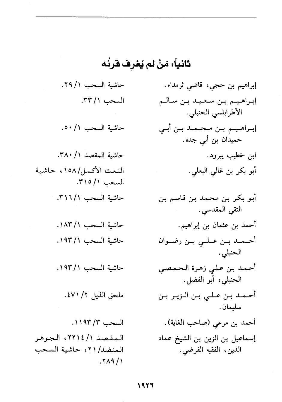 إبراهيم بن سعيد بن سالم الأطرابلسي الحنبلي. - السحب 1/ 33.