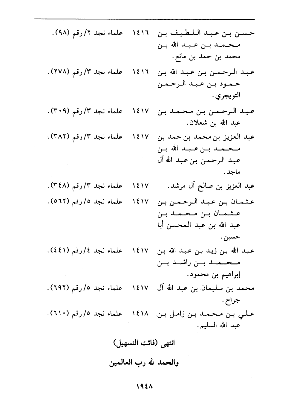 عبد العزيز بن صالح آل مرشد. - 1417 - علماء نجد 3/ رقم (348).