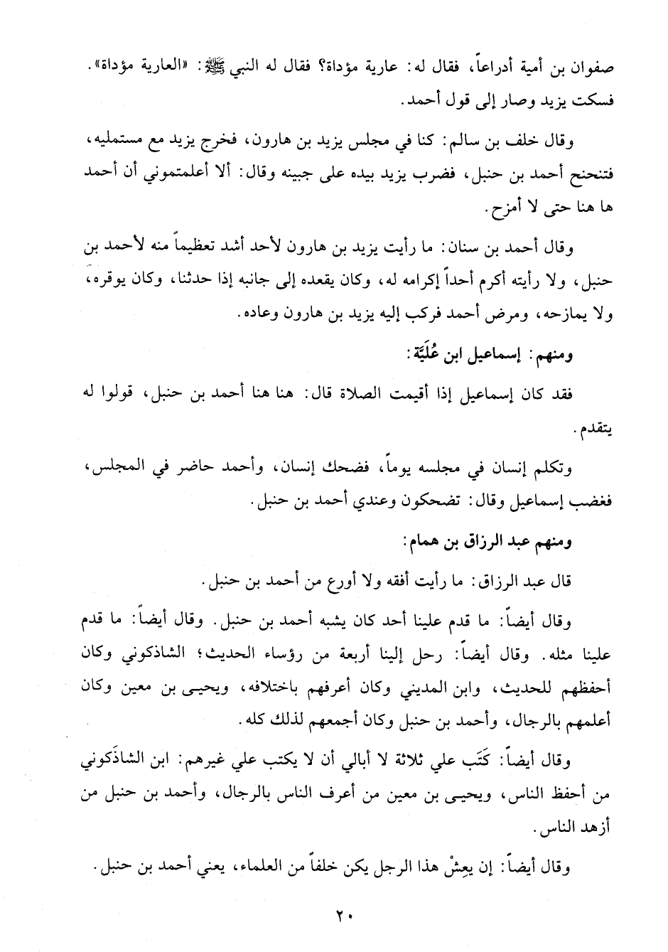قال عبد الرزاق: ما رأيت أفقه ولا أورع من أحمد بن حنبل.