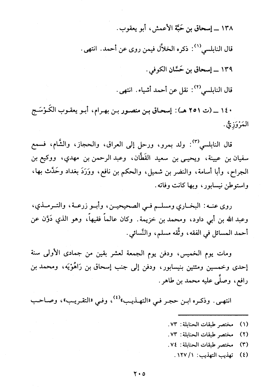 140 - (ت 251 هـ): إسحاق بن منصور بن بهرام، أبو يعقوب الكَوْسَج المَرْوَزِيُّ.