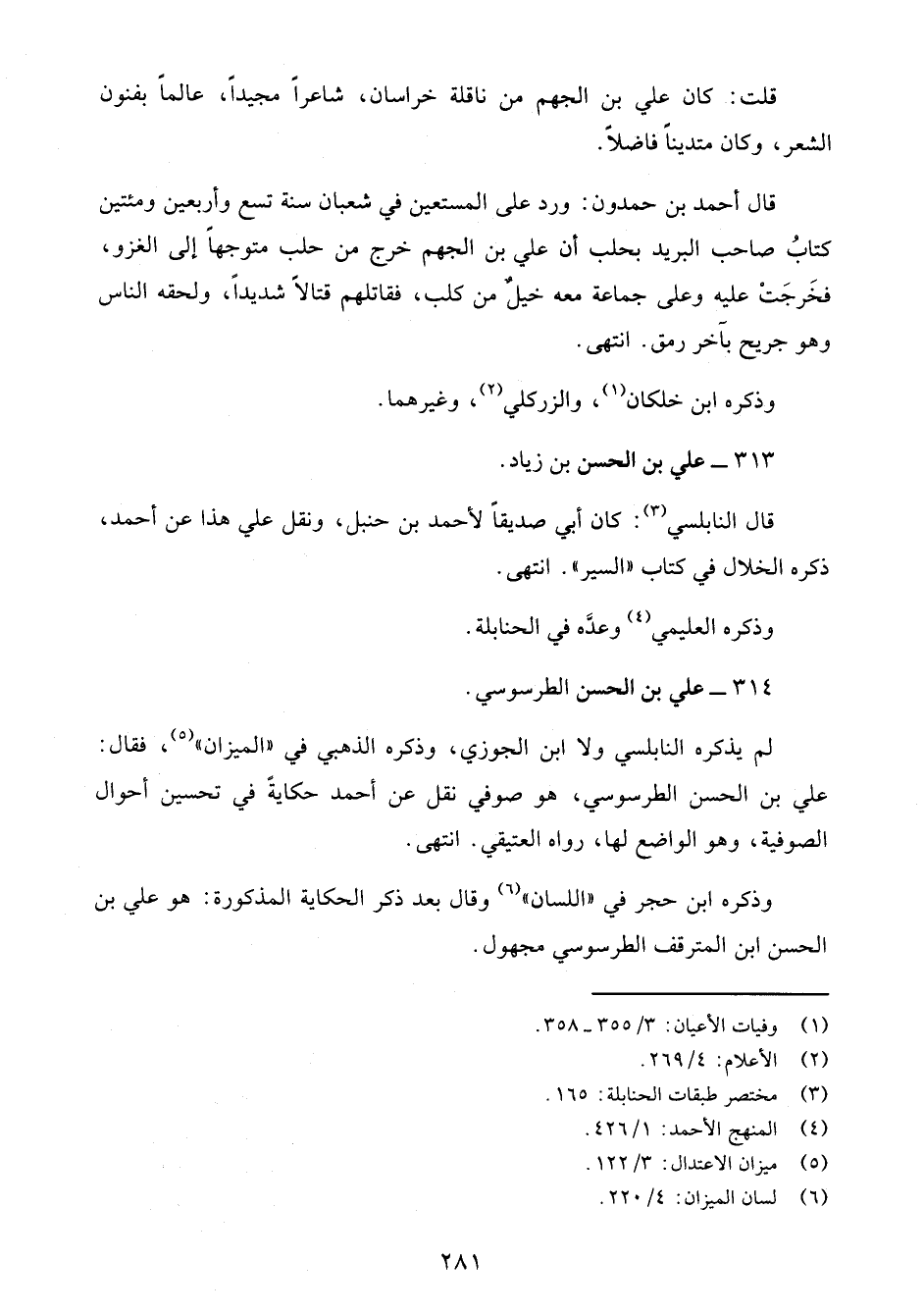 لم يذكره النابلسي ولا ابن الجوزي، وذكره الذهبي في "الميزان" (¬5)، فقال: علي بن الحسن الطرسوسي، هو صوفي نقل عن أحمد حكايةً في تحسين أحوال الصوفية، وهو الواضع لها، رواه العتيقي. انتهى.