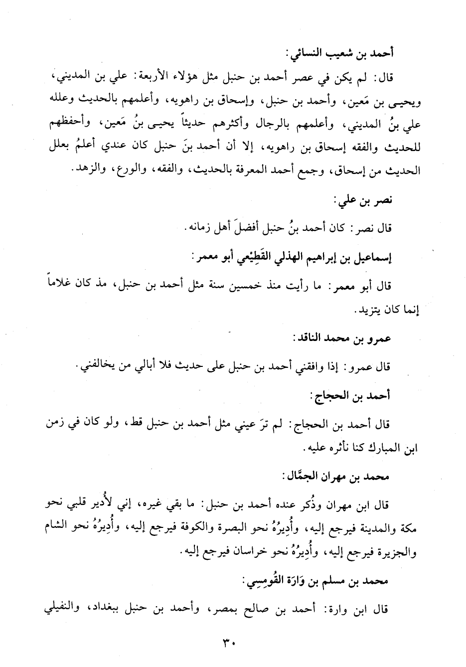 قال نصر: كان أحمد بنُ حنبل أفضلَ أهل زمانه.