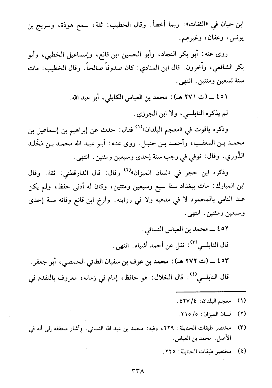 (¬3) مختصر طبقات الحنابلة: 229، وفيه: محمد بن عبد الله النسائي. وأشار محققه إلى أنه في الأصل: محمد بن العباس.