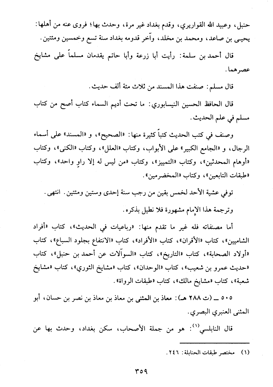 505 - (ت 288 هـ): معاذ بن المثنى بن معاذ بن معاذ بن نصر بن حسان، أبو المثنى العنبري البصري.