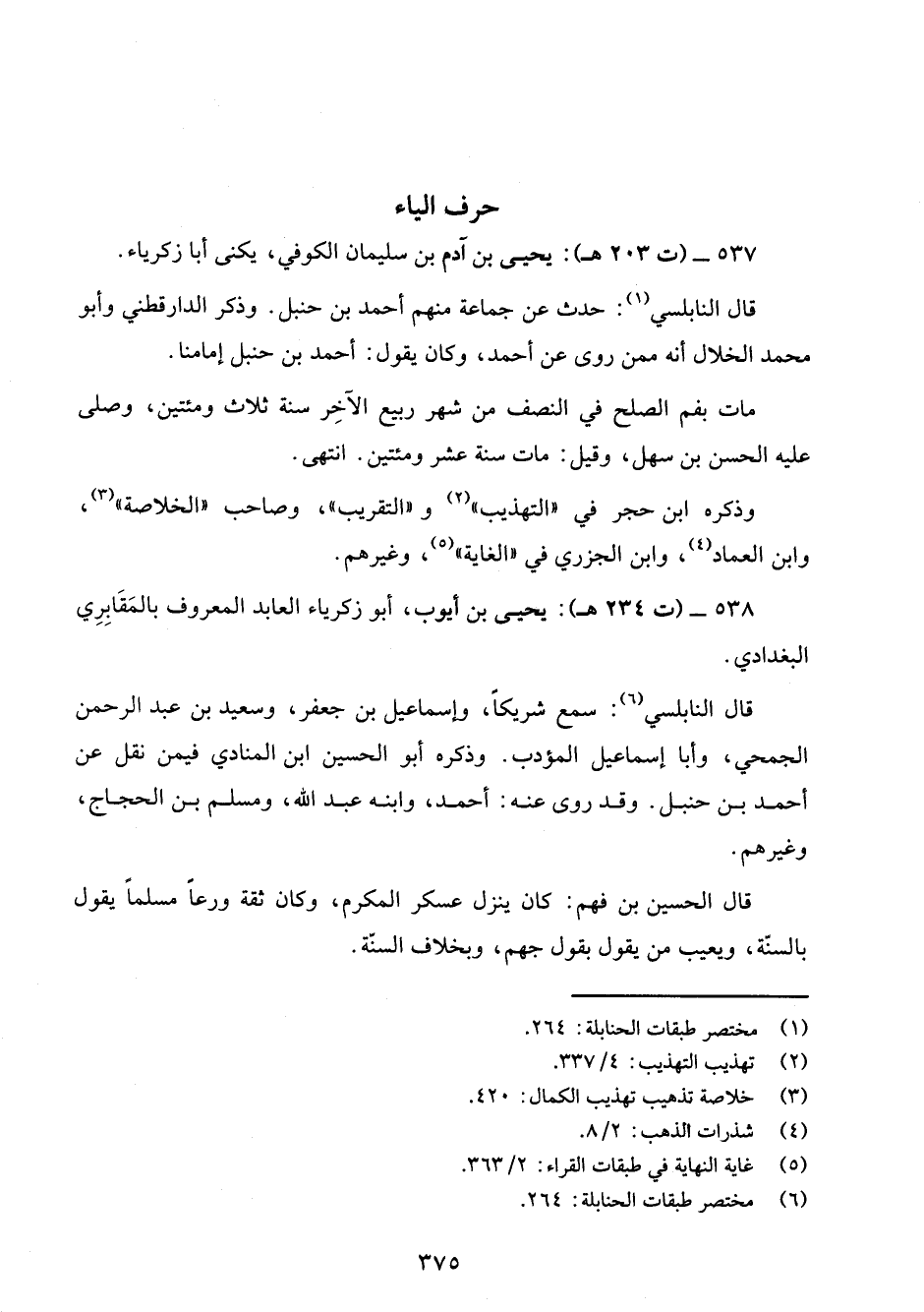 537 - (ت 203 هـ): يحيى بن آدم بن سليمان الكوفي، يكنى أبا زكرياء.