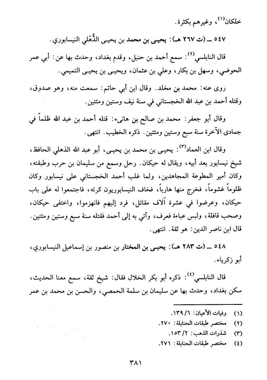 547 - (ت 267 هـ): يحيى بن محمد بن يحيى الذُّهْلي النيسابوري.