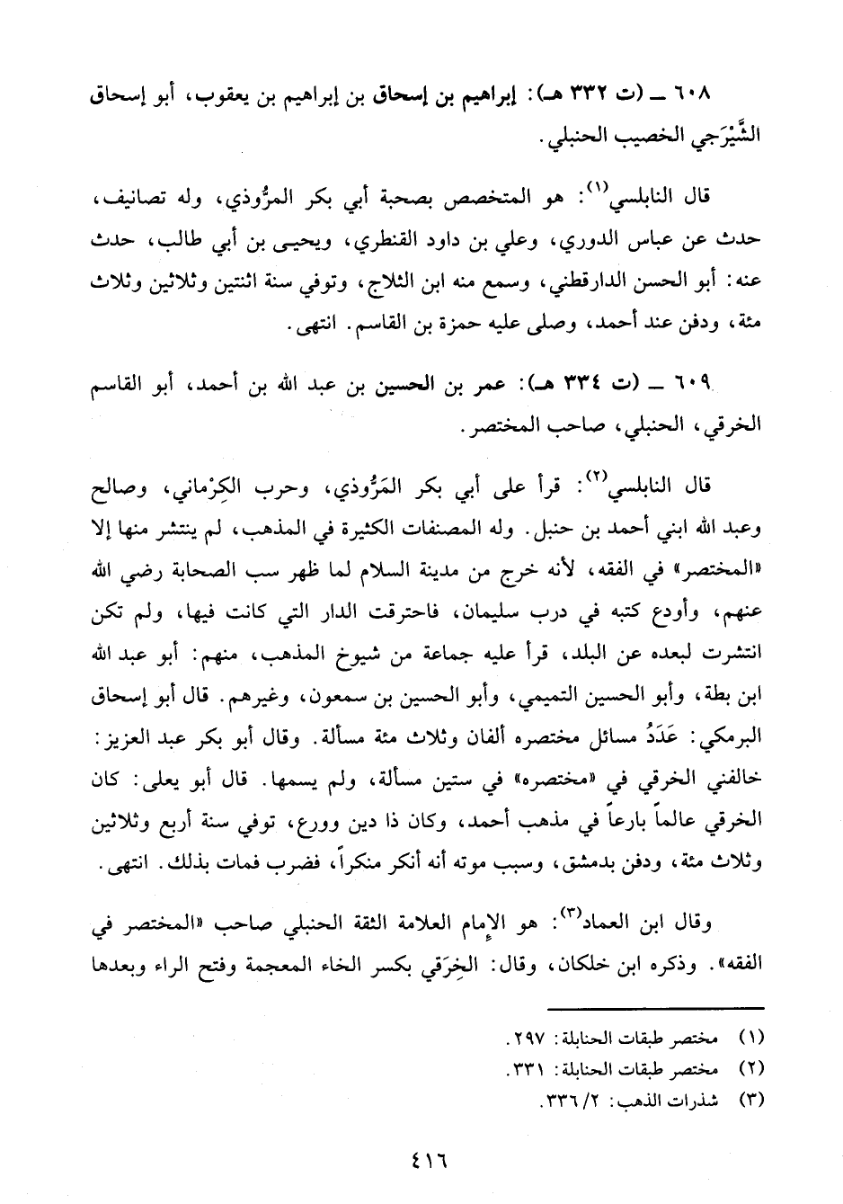 609 - (ت 334 هـ): عمر بن الحسين بن عبد الله بن أحمد، أبو القاسم الخرقي، الحنبلي، صاحب المختصر.