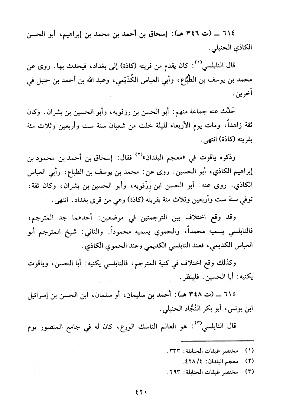 614 - (ت 346 هـ): إسحاق بن أحمد بن محمد بن إبراهيم، أبو الحسن الكاذي الحنبلي.