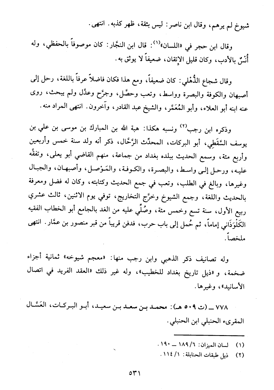 778 - (ت 509 هـ): محمد بن سعد بن سعيد، أبو البركات، العَسَّال المقرئ الحنبلي ابن الحنبلي.