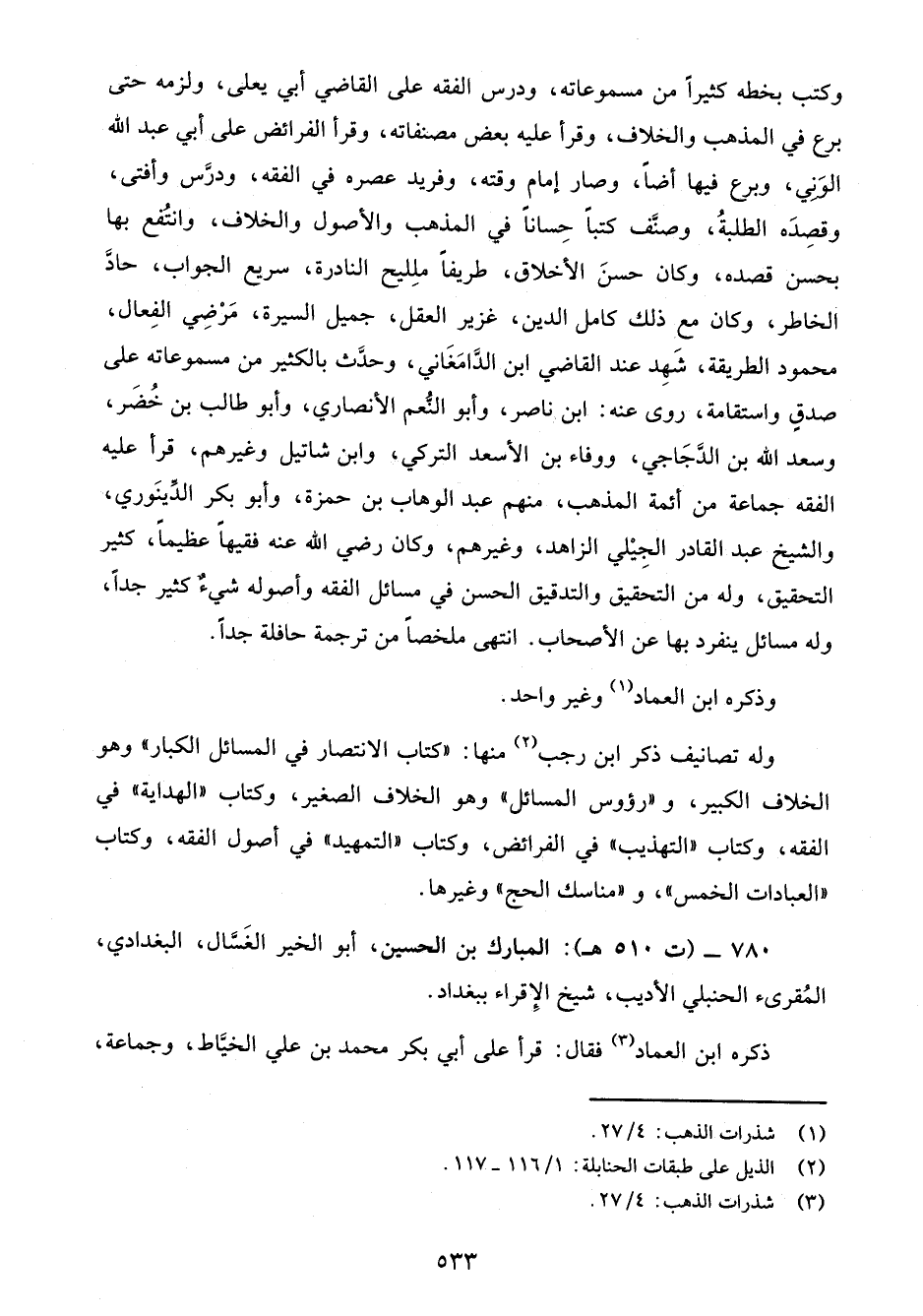 (¬2) الذيل على طبقات الحنابلة: 1/ 116 - 117.