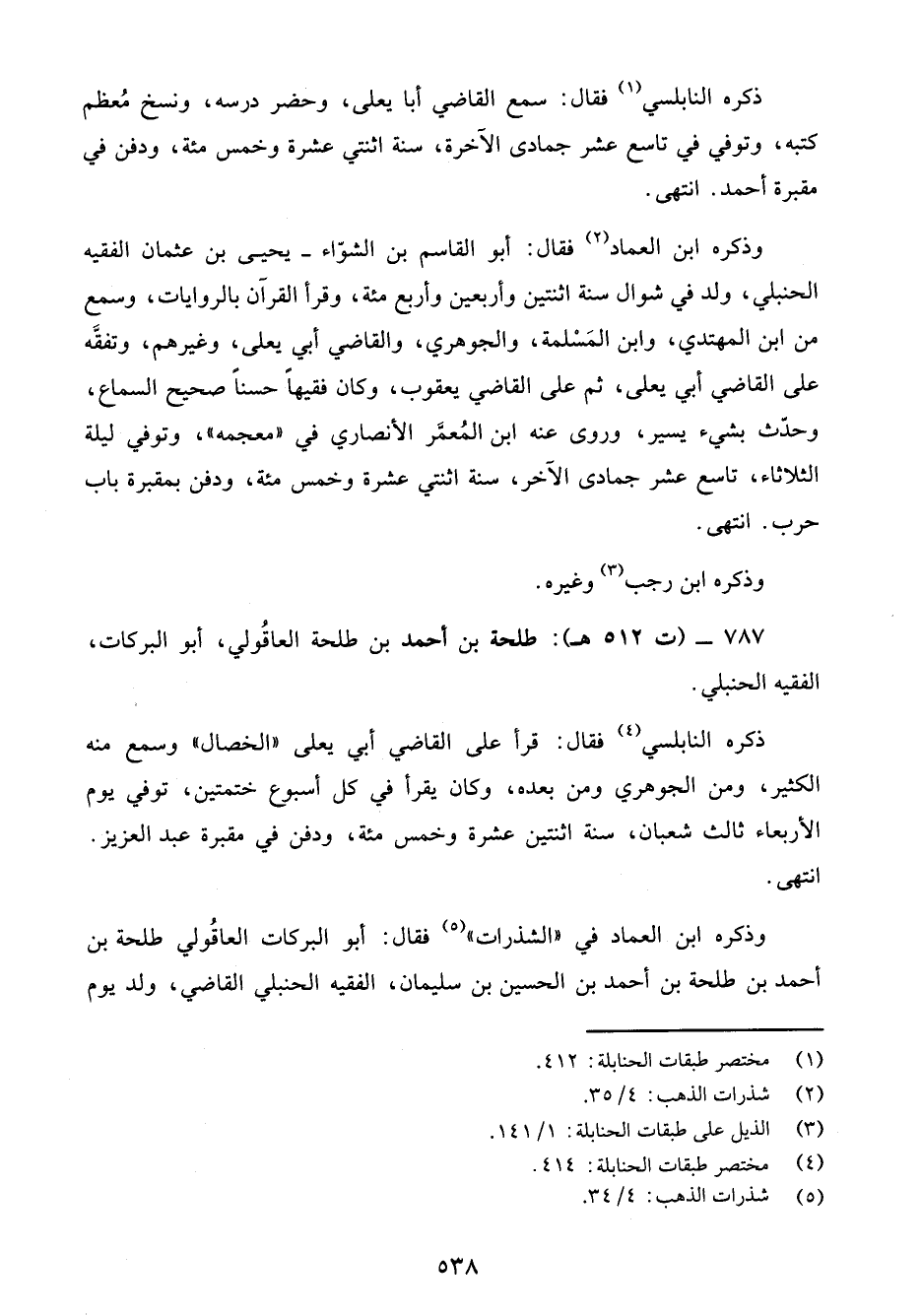 787 - (ت 512 هـ): طلحة بن أحمد بن طلحة العاقُولي، أبو البركات، الفقيه الحنبلي.