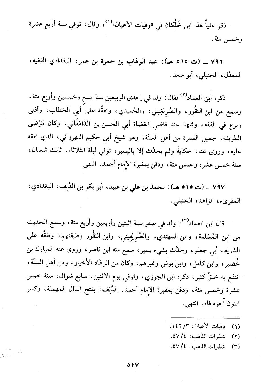 796 - (ت 515 هـ): عبد الوهّاب بن حمزة بن عمر، البغدادي الفقيه، المعدَّل، الحنبلي، أبو سعد.