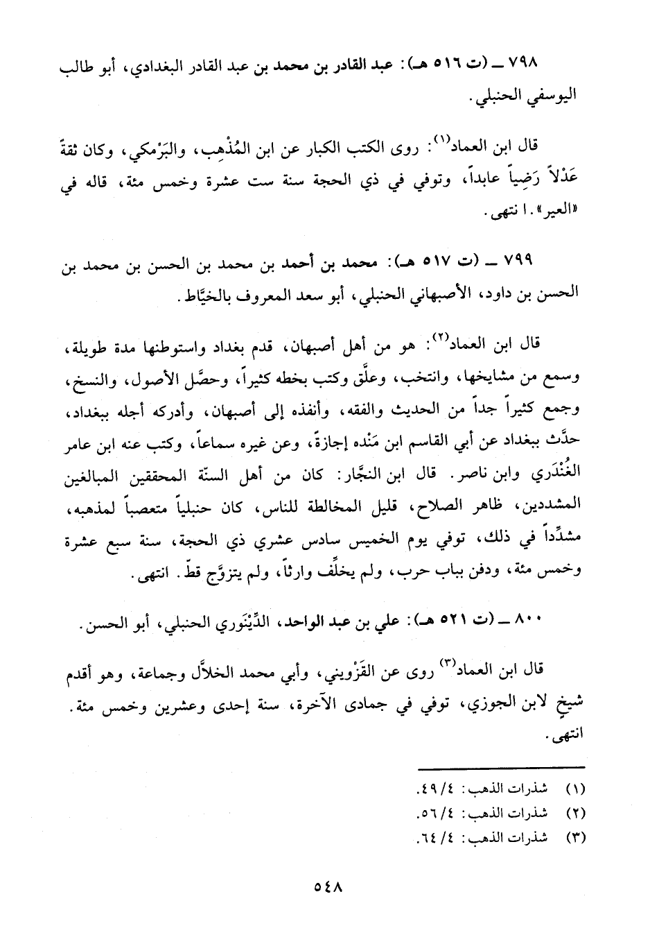 798 - (ت 516 هـ): عبد القادر بن محمد بن عبد القادر البغدادي، أبو طالب اليوسفي الحنبلي.