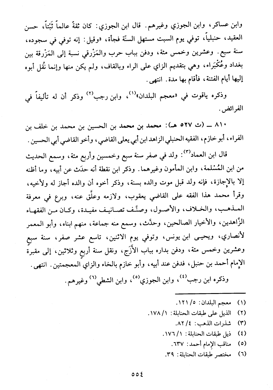 (¬4) ذيل طبقات الحنابلة: 1/ 176.