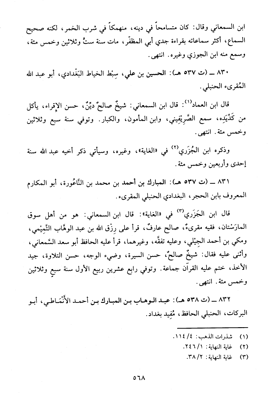 832 - (ت 538 هـ): عبد الوهاب بن المبارك بن أحمد الأَنْمَاطي، أبو البركات، الحنبلي الحافظ، مُفِيد بغداد.