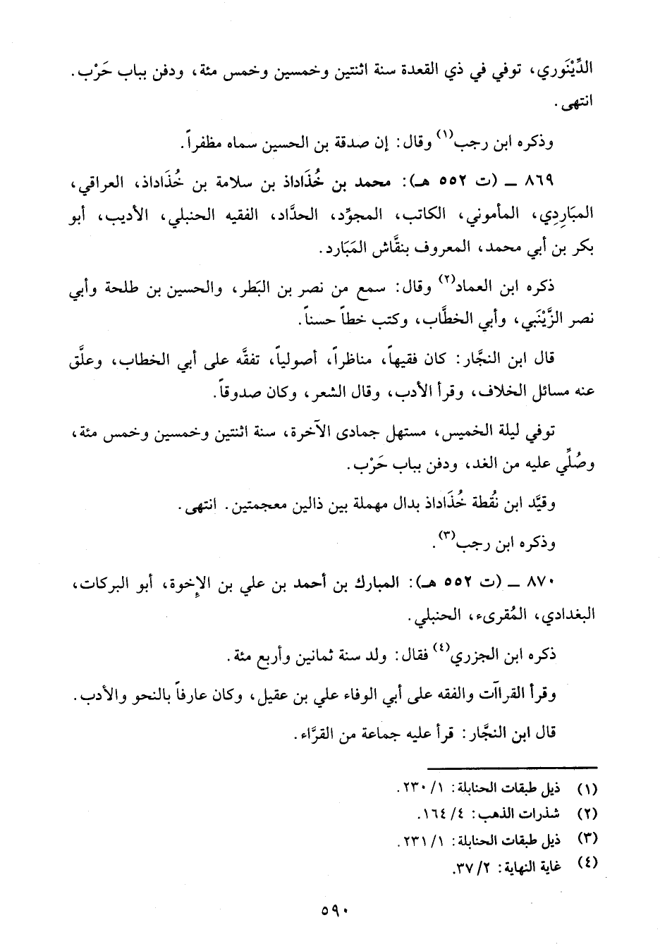 869 - (ت 552 هـ): محمد بن خُذَاداذ بن سلامة بن خُذَاداذ، العراقي، المبَارِدِي، المأموني، الكاتب، المجوِّد، الحدَّاد، الفقيه الحنبلي، الأديب، أبو بكر بن أبي محمد، المعروف بنقَّاش المَبَارد.