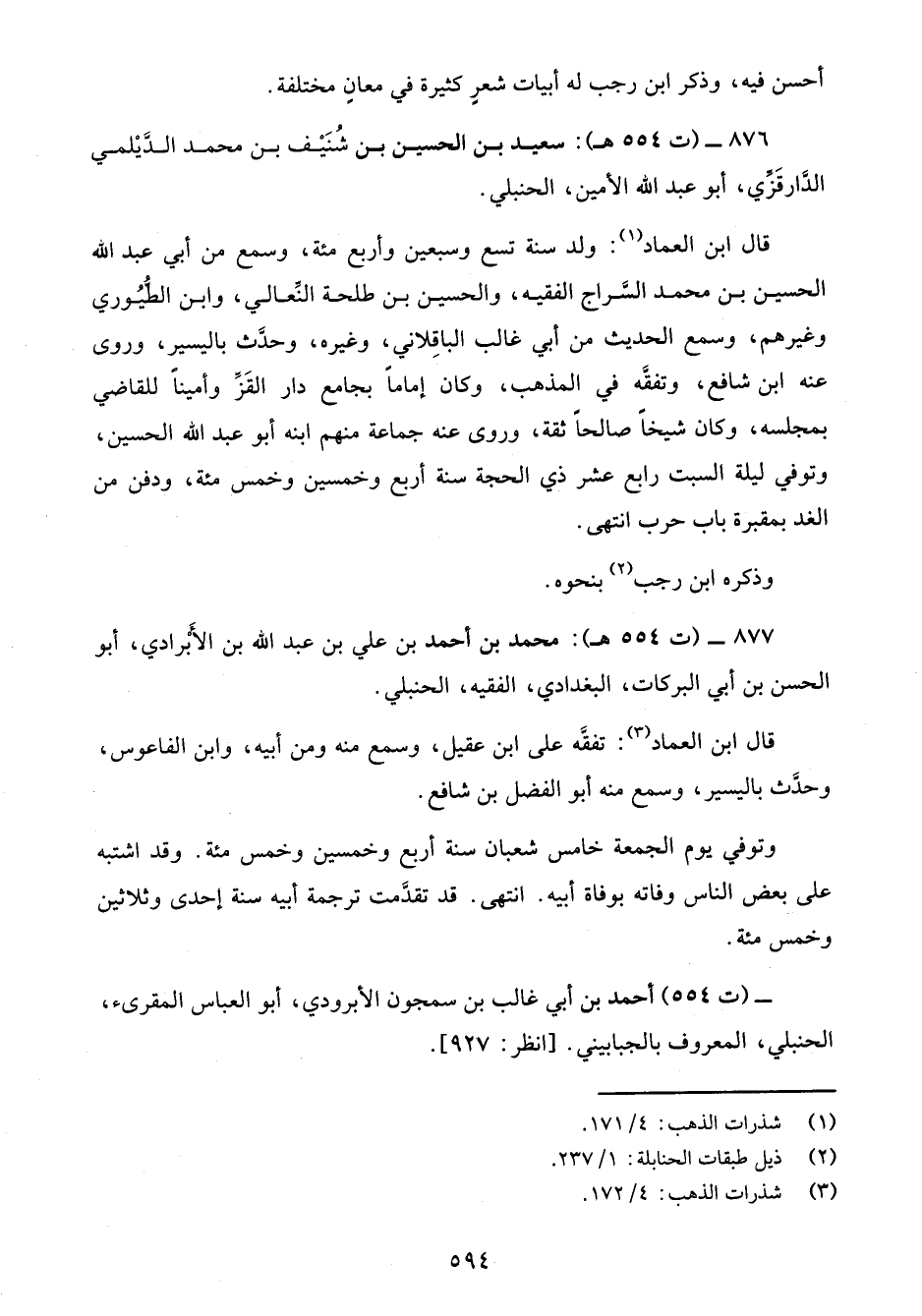876 - (ت 554 هـ): سعيد بن الحسين بن شُنَيْف بن محمد الدَّيْلمي الدَّارقَزِّي، أبو عبد الله الأمين، الحنبلي.
