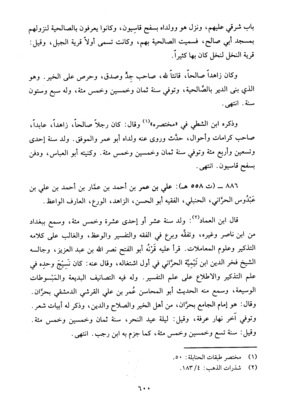 886 - (ت 558 هـ): علي بن عمر بن أحمد بن عمَّار بن أحمد بن علي بن عَبْدُوس الحرَّاني، الحنبلي، الفقيه أبو الحسن، الزاهد، الورع، العارف الواعظ.