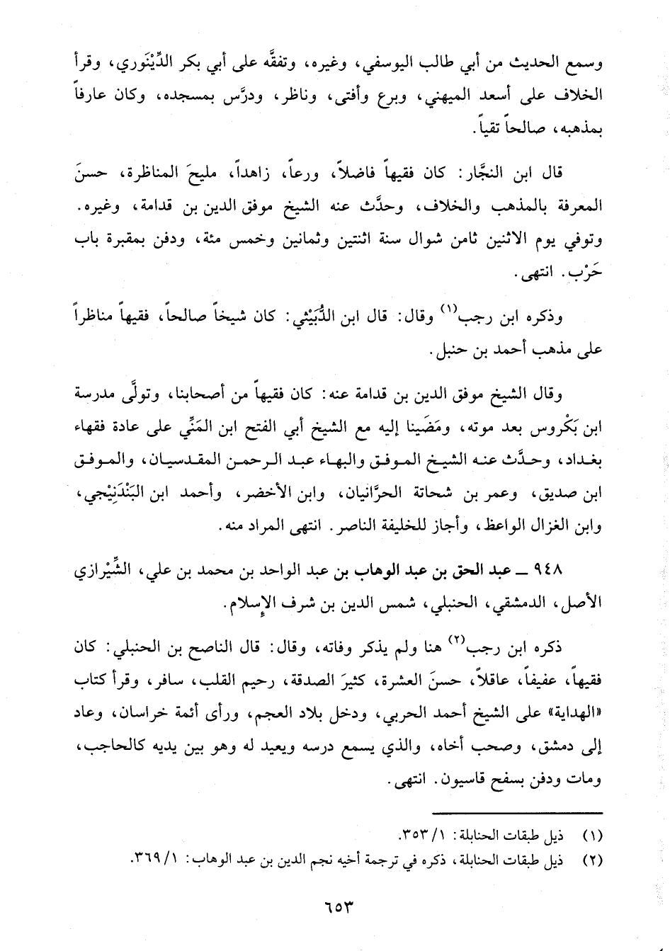 948 - عبد الحق بن عبد الوهاب بن عبد الواحد بن محمد بن علي، الشِّيْرازي الأصل، الدمشقي، الحنبلي، شمس الدين بن شرف الإِسلام.