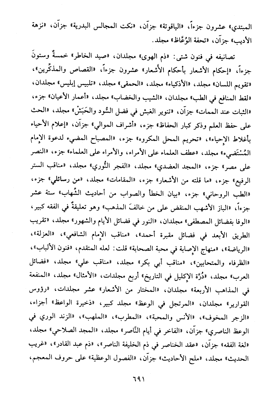 المبتدي" عشرون جزءًا، "الياقوتة" جزآن، "نكت المجالس البدرية" جزآن، "نزهة الأديب" جزآن، "تحفة الوُعَّاظ" مجلد.
