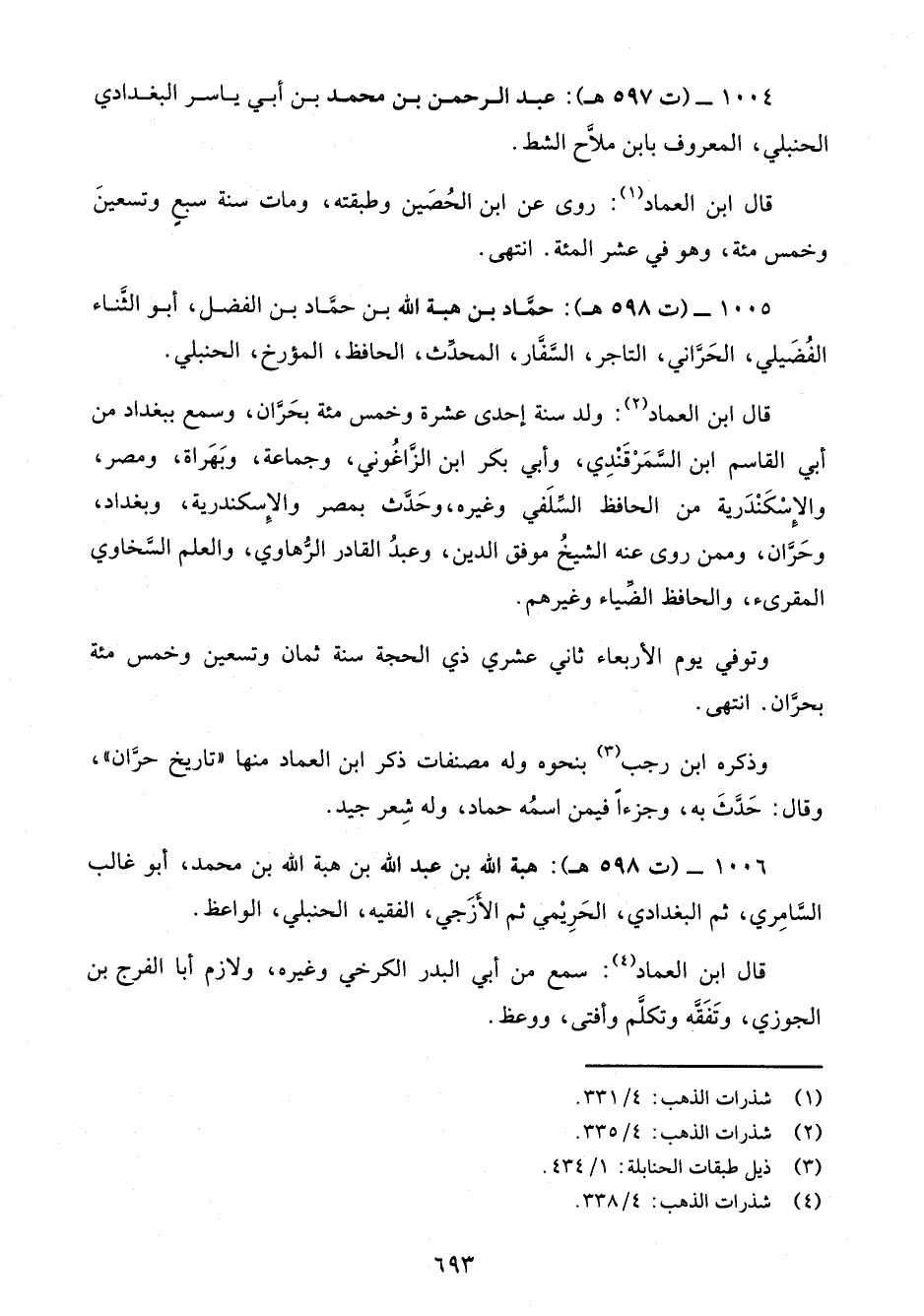 1005 - (ت 598 هـ): حمَّاد بن هبة الله بن حمَّاد بن الفضل، أبو الثَّناء الفُضَيلي، الحَرَّاني، التاجر، السَّفَّار، المحدِّث، الحافظ، المؤرخ، الحنبلي.
