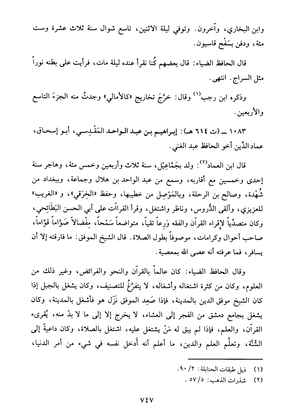 1083 - (ت 614 هـ): إبراهيم بن عبد الواحد المَقْدِسي، أبو إسحاق، عماد الدِّين أخو الحافظ عبد الغني.