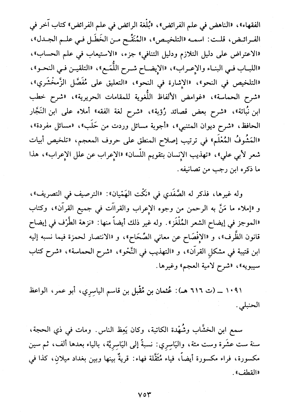 1091 - (ت 616 هـ): عُثمان بن مُقْبل بن قاسم الياسِرِي، أبو عمر، الواعظ الحنبلي.