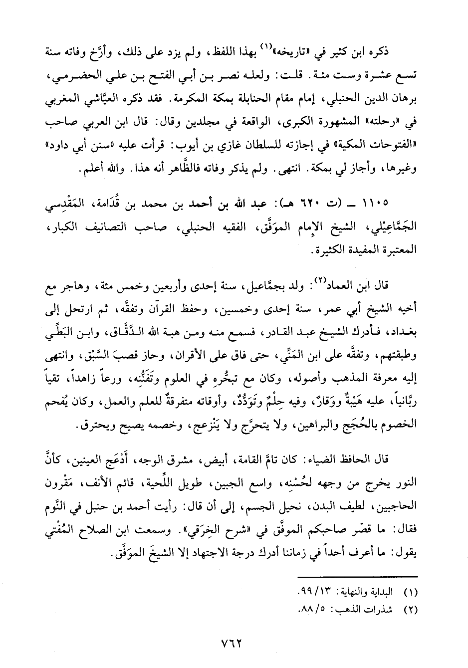 1105 - (ت 620 هـ): عبد الله بن أحمد بن محمد بن قُدَامة، المَقْدِسي الجَماعِيْلي، الشيخ الإِمام الموَفَّق، الفقيه الحنبلي، صاحب التصانيف الكبار، المعتبرة المفيدة الكثيرة.