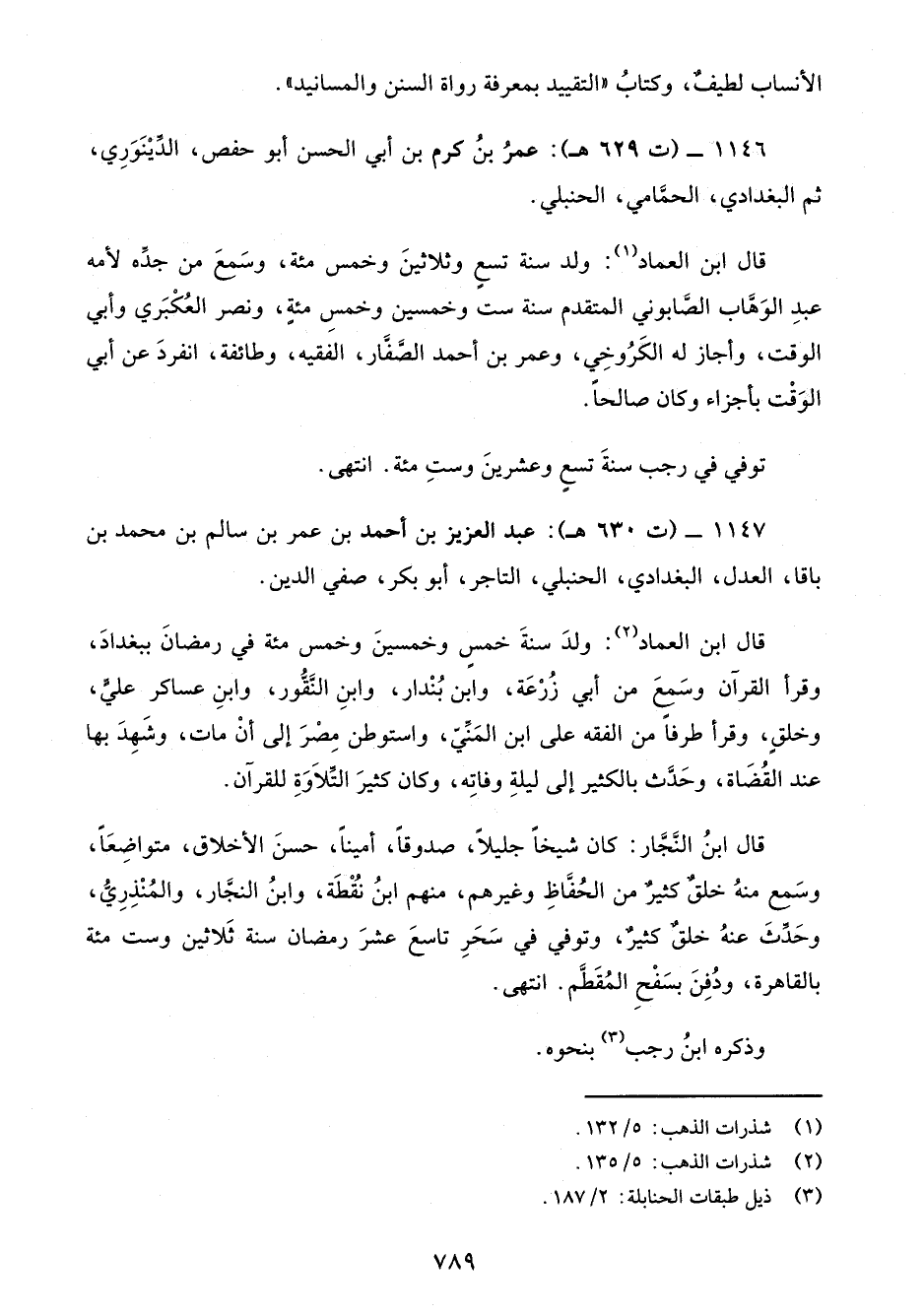 1146 - (ت 629 هـ): عمرُ بنُ كرم بن أبي الحسن أبو حفص، الدَّيْنَوَرِي، ثم البغدادي، الحمَّامي، الحنبلي.