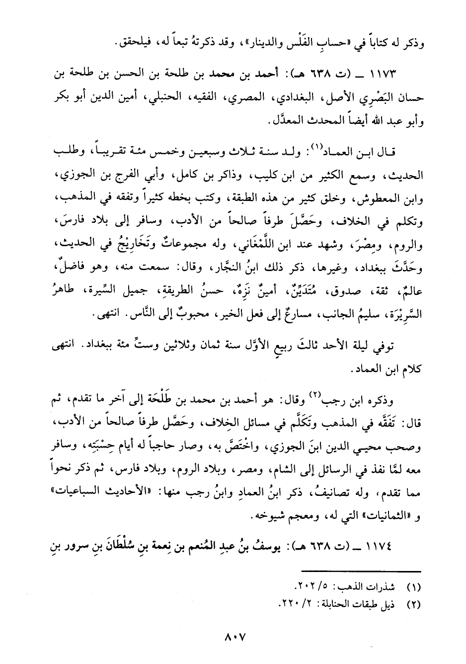 1173 - (ت 638 هـ): أحمد بن محمد بن طلحة بن الحسن بن طلحة بن حسان البَصْرِي الأصل، البغدادي، المصري، الفقيه، الحنبلي، أمين الدين أبو بكر وأبو عبد الله أيضًا المحدث المعدَّل.