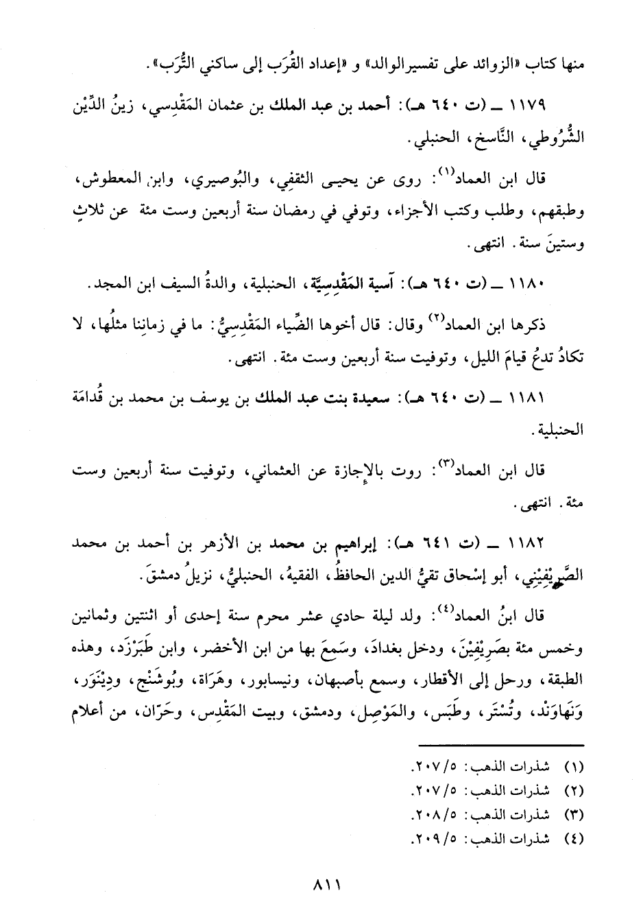 1181 - (ت 640 هـ): سعيدة بنت عبد الملك بن يوسف بن محمد بن قُدامَة الحنبلية.