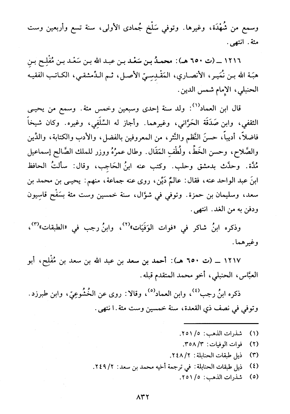 1217 - (ت 650 هـ): أحمد بن سعد بن عبد الله بن سعد بن مُفْلِح، أبو العبَّاس، الحنبلي، أخو محمد المتقدم قبله.